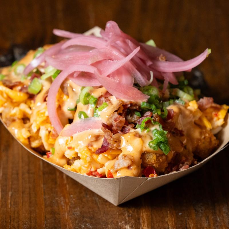 Crispy tots, bacon, Iyla’s pimento cheese, comeback sauce, scallions, & pickled onions.