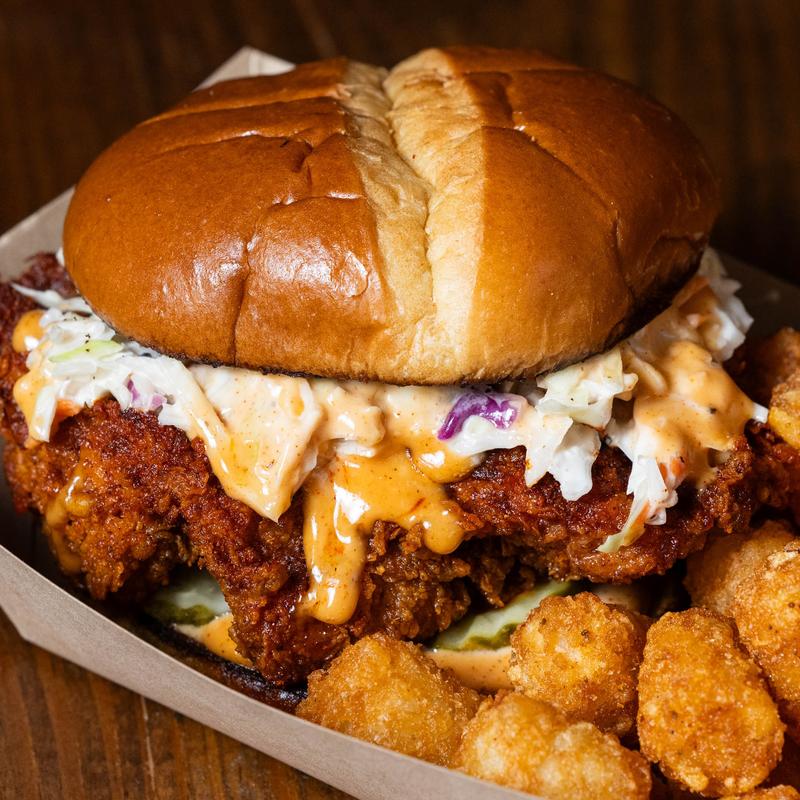 Hand-breaded nashville style hot chicken, crisp coleslaw, pickles, & our special comeback sauce on a toasted bun | make it mild, medium, or hot.